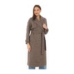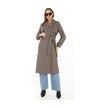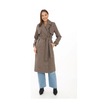 Kadın Balık Sırtı Yünlü Dokuma Kaşe Kaban Kruvaze Yaka, Kuşaklı, Cepli, Astarlı Uzun Boy Tesettür Vizon