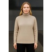 Kadın Balıkcı Yaka Bağazlı Triko Kazak Pamuklu Kalın Fitilli Dokuma - Bej Bej