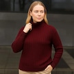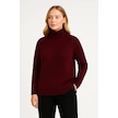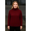Kadın Balıkcı Yaka Bağazlı Triko Kazak Pamuklu Kalın Fitilli Dokuma - Bordo Bordo