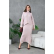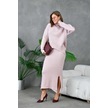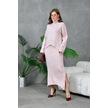 Kadın Balıkçı Yaka Oversize Kazak Uzun Etek İkili Triko Takım Pudra