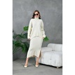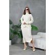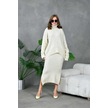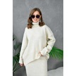 Kadın Balıkçı Yaka Oversize Kazak Uzun Etek İkili Triko Takım Taş