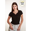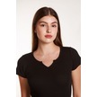 Kadın Basic Fitilli Likralı V Yaka Kollu Tshirt Atlet Bluz Siyah