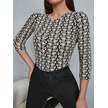 Kadın Baskılı Bisiklet Yaka Bluz Siyah