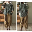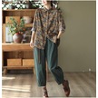 Kadın Baskılı Pamuk Keten Gömlek Kadın Rahat İlkbahar Ve Sonbahar Vintage Uzun Kollu Gömlek Üst Kahve Kahverengi