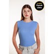 Kadın Bebe Mavisi Fitilli Likralı Sıfır Kol Bisiklet Yaka Örme Atlet Tshirt Bluz Bebe Mavi