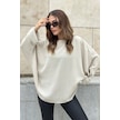 Kadın Bej Airobin Yarasa Duble Kol Salaş Bluz Ekstra Oversize Yuvarlak Yaka - Tesettüre Uygun Bej