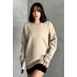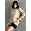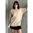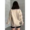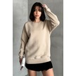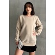 Kadın Bej Bisiklet Yaka Oversize Sweatshirt Bej