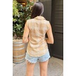 Kadın Bej Ekose Desen, Dokulu Bodrum Kumaş, Kolsuz Rahat Gömlek Bej