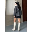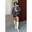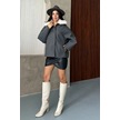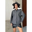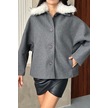 Kadın Bej Kürk Yakalı Kısa Ceket Kaşe Kumaş Oversize Geniş Kol Düğmeli Kışlık Antrasit
