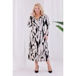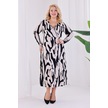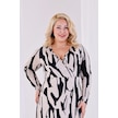Kadın Bej Siyah Soyut Desen Kruvaze Yaka Büyük Beden Esnek Maxi Elbise Bej - Siyah