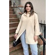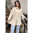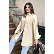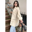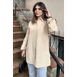 Kadın Bej Terikoton Kumaş, Yırtmaçlı, Rahat Uzun Gömlek Bej