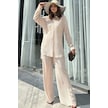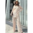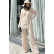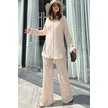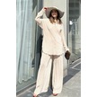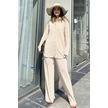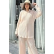 Kadın Bej Uzun Tunik Gömlek & Beli Lastikli, Bol Paça Pantolon - Salaş Bürümcük Takım Bej