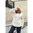 Yuvarlak Yaka Baskılı Ekru Örme Bluz