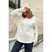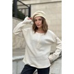 Kadın Bej Yumuşak Dokulu Düğmeli Triko Kazak, Uzun Kol, Regular Kesim, Standart Boy. Taş