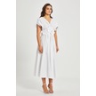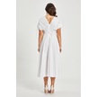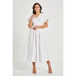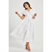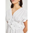 Kadın Bel Detaylı Kısa Kollu Elbise Çiçek Aplikeli, Büzgü Ve Bağcık Detaylı, %100 Pamuk Beyaz