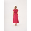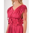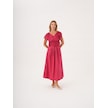 Kadın Bel Detaylı Kısa Kollu Elbise Çiçek Aplikeli, Büzgü Ve Bağcık Detaylı, %100 Pamuk Kırmızı