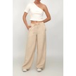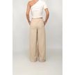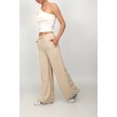 Kadın Beli Lastikli Geniş Paça Keten Pantolon Bej
