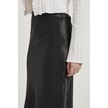Kadın Beli Lastikli Likralı Midi Boy Parlak Saten Etek Siyah