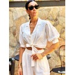 Kadın Beyaz Bağlamalı Bluz Ve Yüksel Bel Pantolon Beyaz