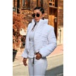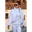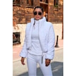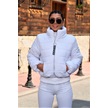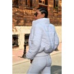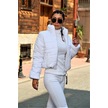 Kadın Beyaz Dik Yaka Su Geçirmez Fermuar Kapamalı Kısa Şişme Mont