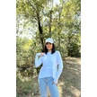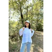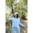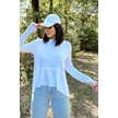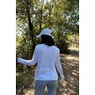 Kadın Beyaz Elleri Eldiven Detaylı, Asimetrik Kesim, Bisiklet Yaka, Eteği Pliseli, Salaş Spor Bluz Beyaz