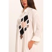 Kadın Beyaz Önü Pul Payet Aplike Nakışlı Kolu Apoletli Uzun Gömlek Elbise-beyaz Beyaz