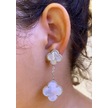 Kadın Beyaz Renk Yonca Model İkili Silver Renk Çelik Küpe