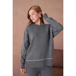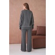 Kadın Bisiklet Yak Adüşük Kol Kazak Fitilli Pantolon İkili Triko Takım Antrasit
