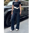 Kadın Bisiklet Yaka Asimetrik Kesim Atlet Detay Bluz Ve Yüksek Bel Bol Paça Pantolon Ikili Takım Çok Renkli