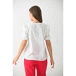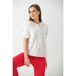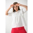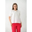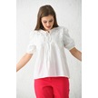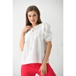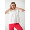 Kadın Bisiklet Yaka Balon Kol Nakış Detylı Volanlı Dokuma Yazlık Bluz Ekru