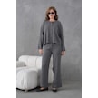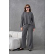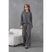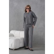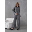 Kadın Bisiklet Yaka Düğme Kapama Kaşkorse Ceket Pantolon İkili Triko Takım Antrasit