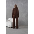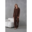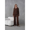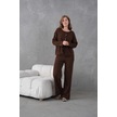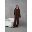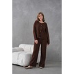 Kadın Bisiklet Yaka Düğme Kapama Kaşkorse Ceket Pantolon İkili Triko Takım Kahve