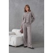Kadın Bisiklet Yaka Düğme Kapama Kaşkorse Ceket Pantolon İkili Triko Takım K.vizon