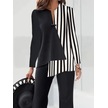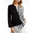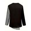Kadın Bisiklet Yaka Düğmeli Çizgi Desenli Uzun Kollu Keten Bluz Siyah