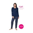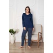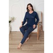 Kadın Bisiklet Yaka Düğmesiz Dökümlü Viskon Mevsimlik Uzun Kol Cepli Pijama Takımı Lacivert