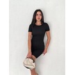 Kadın Bisiklet Yaka Kısa Kol Likralı Elbise - Siyah Siyah