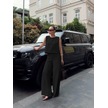Kadın Bisiklet Yaka Kolsuz Bluz Ve Bol Paça Aerobin Kumaş Ikili Takım Siyah