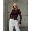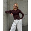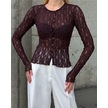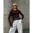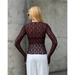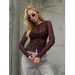 Kadın Bisiklet Yaka Önden Düğmeli Full Esnek Dantel Bürümcük Spor Şık Tasarım Gece Bluzu Kahverengi