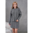 Kadın Bisiklet Yaka Saç Örgü Kazak Etek İkili Triko Takım Antrasit