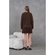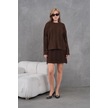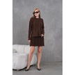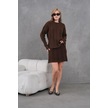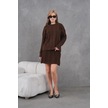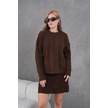 Kadın Bisiklet Yaka Saç Örgü Kazak Etek İkili Triko Takım Kahve