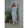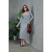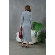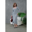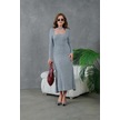 Kadın Bisiklet Yaka Tül Detay Maksi Boy Fitilli Triko Elbise Gri