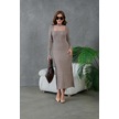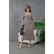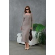Kadın Bisiklet Yaka Tül Detay Maksi Boy Fitilli Triko Elbise Vizon