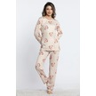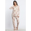 Kadın Bisiklet Yaka Uzun Kol Ayıcıklı Pijama Takımı Bej Lukitus Bej