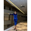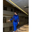Kadın Bisiklet Yaka Vatkalı Manşet Detay Kadife Kumaş Midi Boy Elbise Saks Mavi
