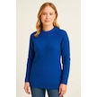 Kadın Bisiklet Yuvarlak Yaka Triko Kazak Pamuklu Kalın Fitilli Dokuma, Regular Fit Uzun Kollu Kışlık Saks Mavisi