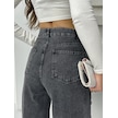 Kadın Bıyıklı Kar Yıkama Bol Paça Kot Pantolon Siyah