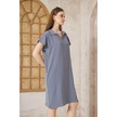 Kadın Bol Kesim Polo Yaka Kısa Kollu Günlük Kısa Midi Elbise Dizüstü 2883200 Gri