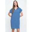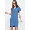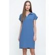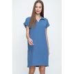 Kadın Bol Kesim Polo Yaka Kısa Kollu Günlük Kısa Midi Elbise Dizüstü 2883200 Mavi