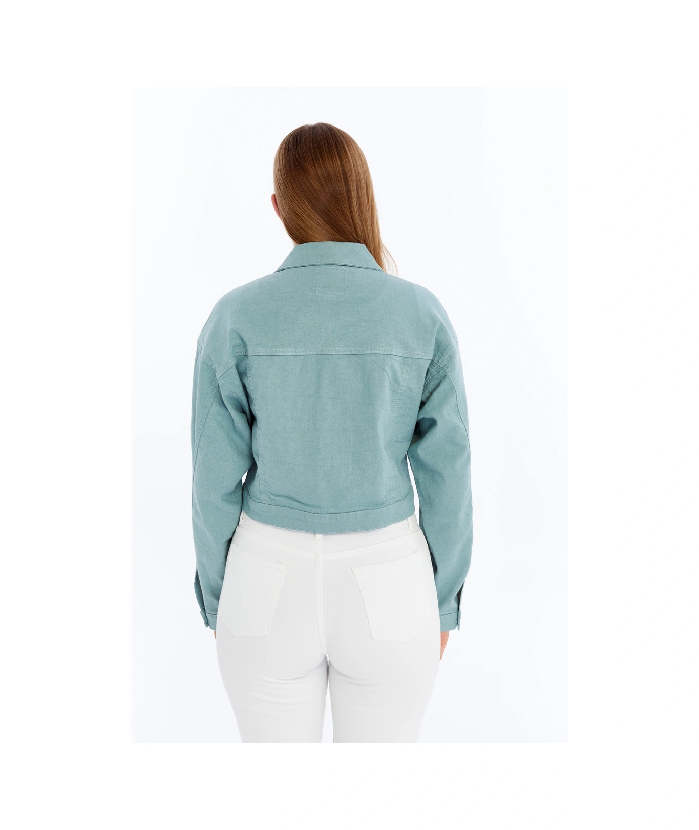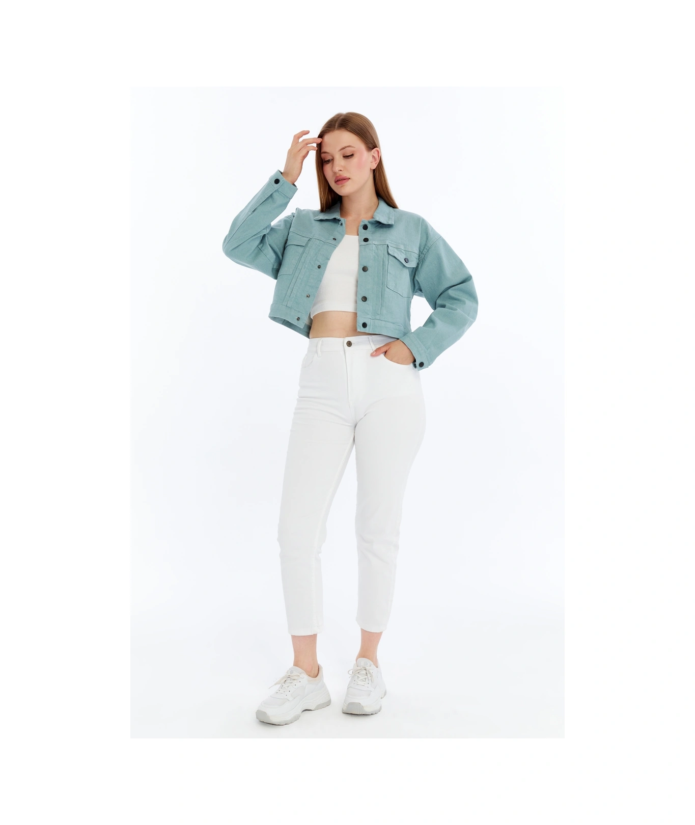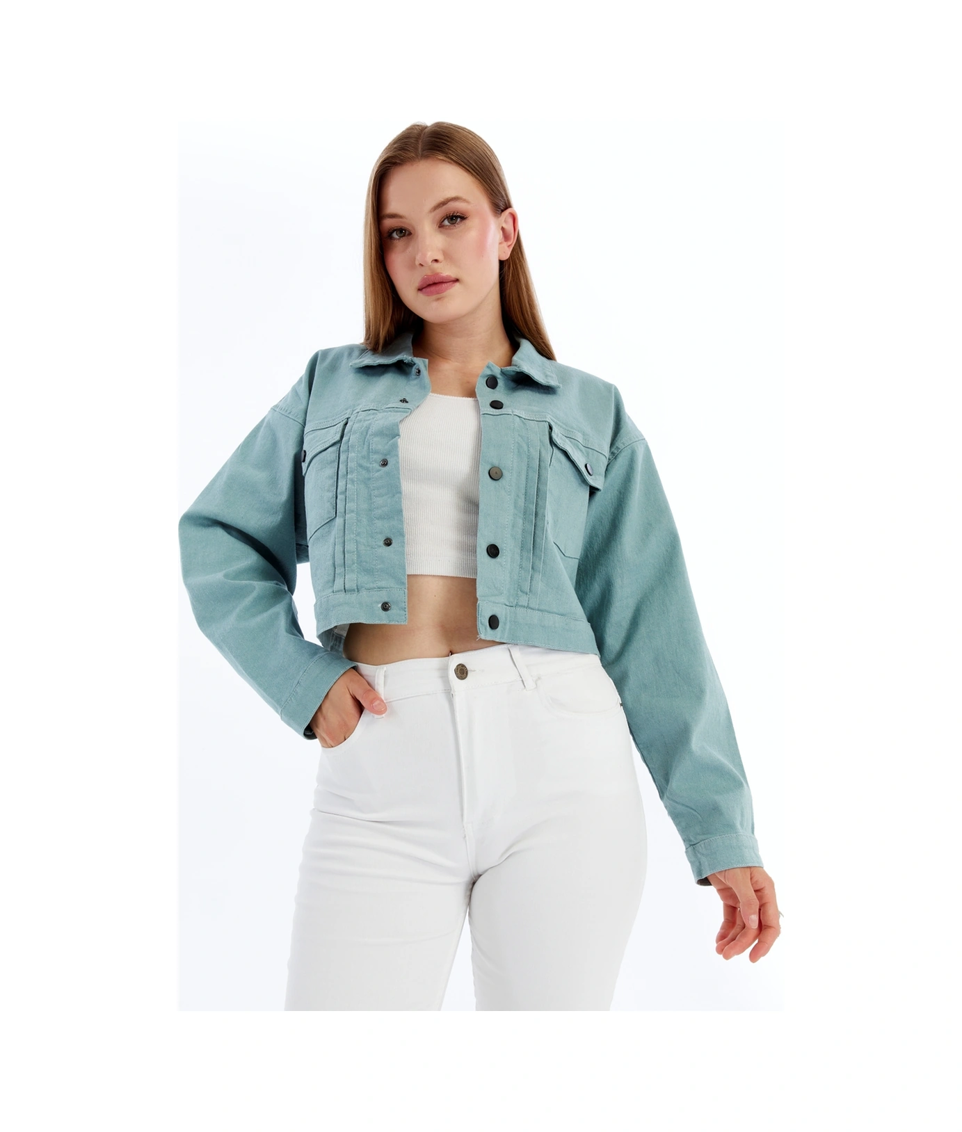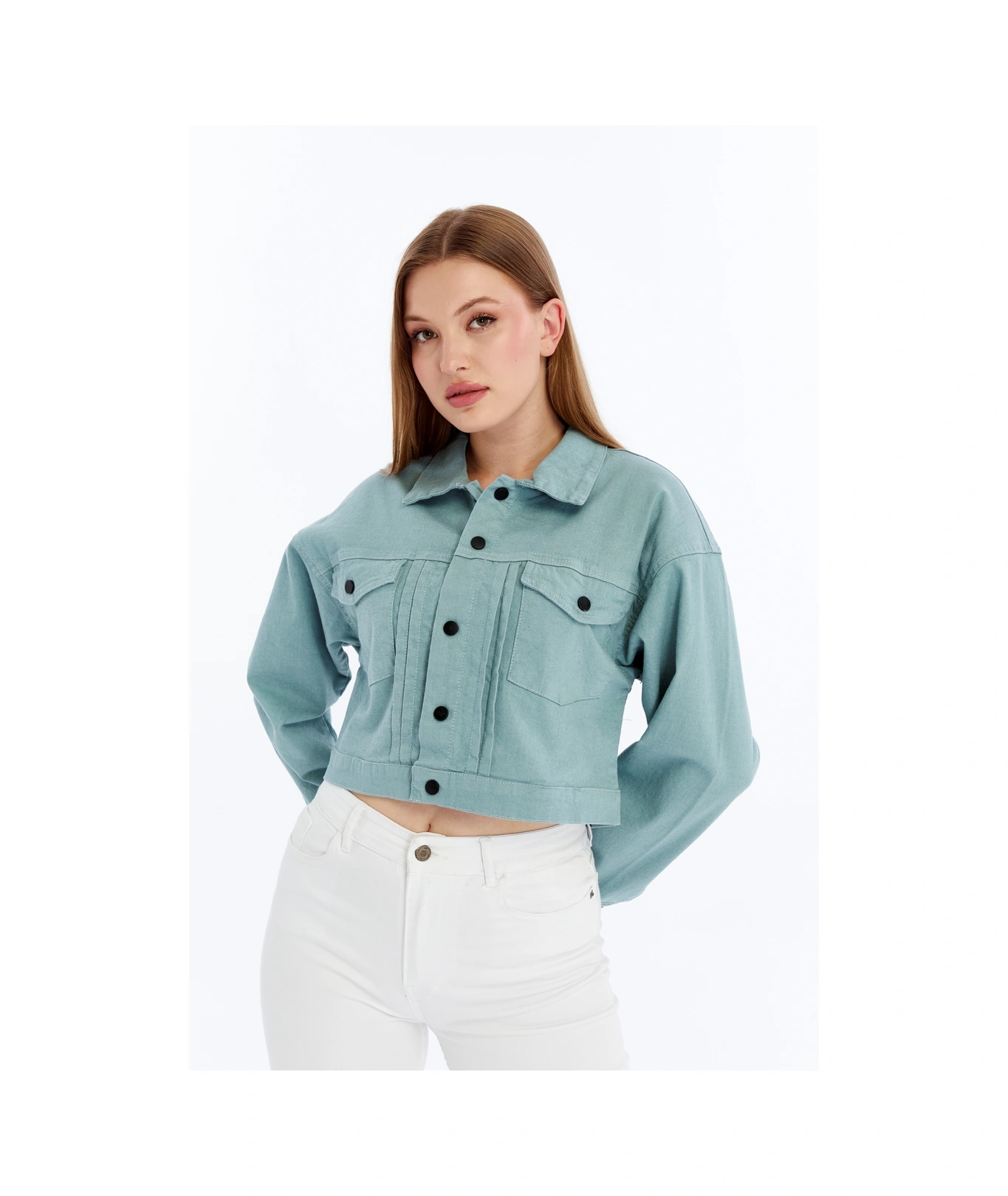 Kadın Bomber Gabardin Ceket Çıt Çıt Düğmeli Kolej Kot Ceket Cepli Renkli Kolay Kombinlenebilen Ceket Yeşil