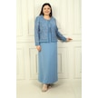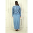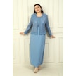 Kadın Boncuk Pul İşlemeli Tül Ceket Yarım Ay Kollu Uzun Elbise Astarlı Büyük Beden 2'li Takım İndigo
